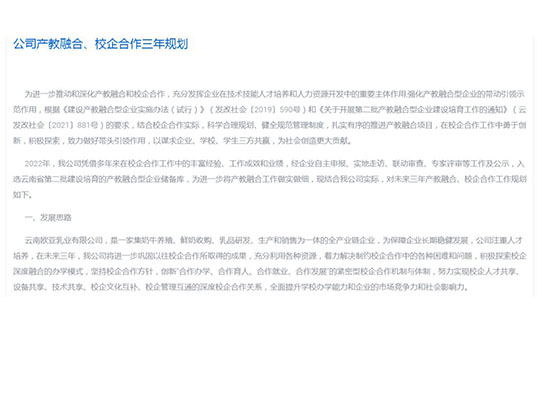 為完善“企業+基地+農戶”的利益聯結機制,公司通過乳品加工廠的建設...